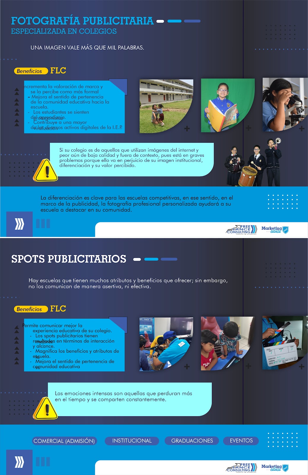 fotografía y spots publicitarios especializados en escuelas.